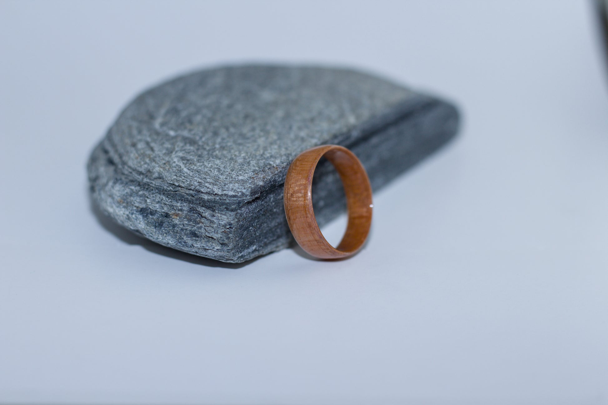 Crafted from figured Cherry wood, this ring showcases the wood’s natural grain and warm, golden-red tones.